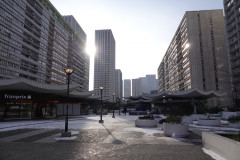 Un peu d’histoire… Edifié entre 1969 et 1975 selon la conception de Michel Holley d’un urbanisme fonctionnel (théorie de Le Corbusier) par l’Association syndicale de l’ilôt Gobelins Nord (ASIGN), l’ensemble des OLYMPIADES s’édifie en grande partie sur les sursols de la gare souterraine de marchandises, vendus par la SNCF. Les Olympiades devaient s’inscrire dans un vaste plan de plus de la moitié du 13ème avec dalles, tours, voies rapides souterraines, jusqu’à la Place d’Italie. Ceci a été stoppé à la fin des années 70 par des luttes urbaines contre les promoteurs encouragés par l’Etat central (élection de Giscard / premières élections municipales de 1977…). Outre les quartiers de la Villa d’Este et la Place Vénétie, on en retrouve des traces avec plusieurs tours avenue d’Italie, l’ensemble Vandrezanne-Italie 2 (Place d’Italie) et parties du boulevard Vincent Auriol…